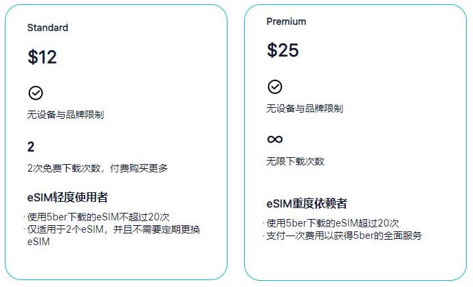 5ber有Standard和Premium两个版本,实物SIM卡没有区别,主要的区别是5ber APP的使用权限。