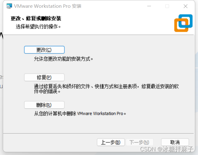 如果你点击下一步出现了这个页面的话,那就证明你电脑里面已经有vmware了,就可以直接用了,如果你想重新安装,直接删除就好,再重新打开安装程序继续安装。