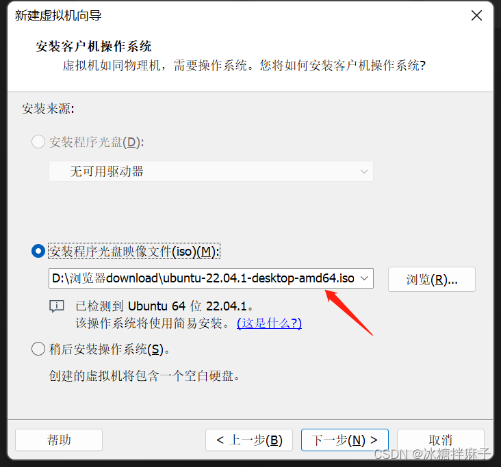 这里的路径,需要选择一个虚拟机的光盘映像文件,
