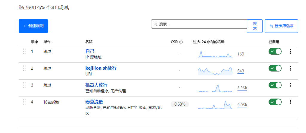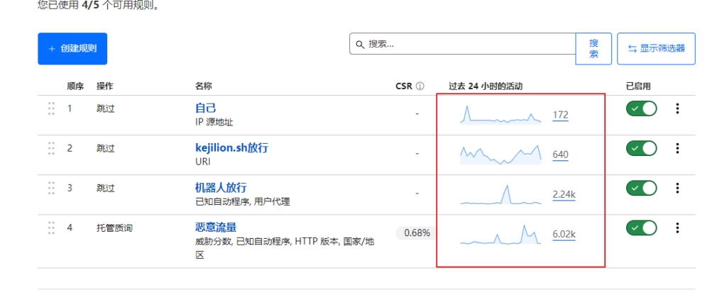 网站趋于稳定,又迎来nginx调优,先和大家分享我CF的WAF规则,因为这个是最有效的防御,能抵御大量脚本小子的恶意攻击流量,已经被我验证数月。