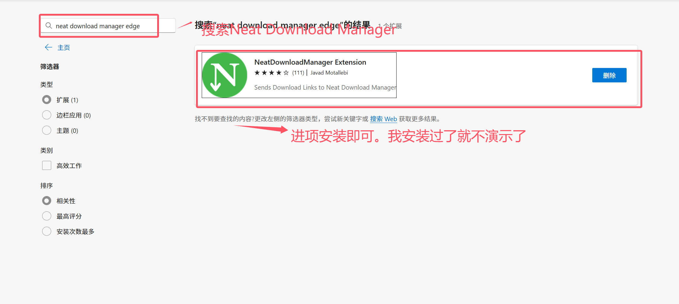 搜索并安装NeatDownloadManager Extension