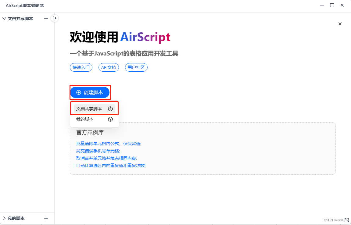 3、点击【创建脚本】-【文档共享脚本】