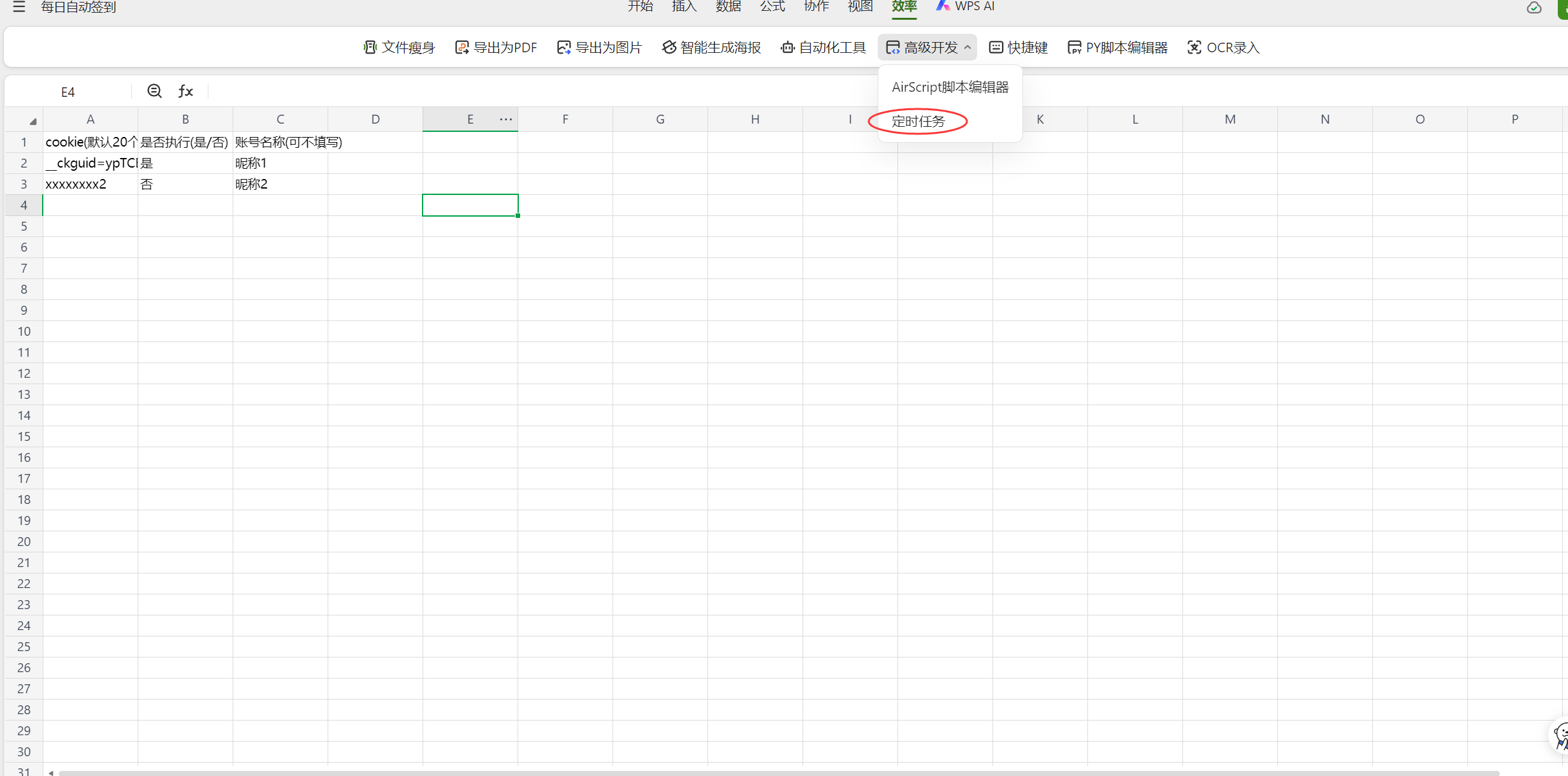 回到工作表,点击高级开发——定时任务