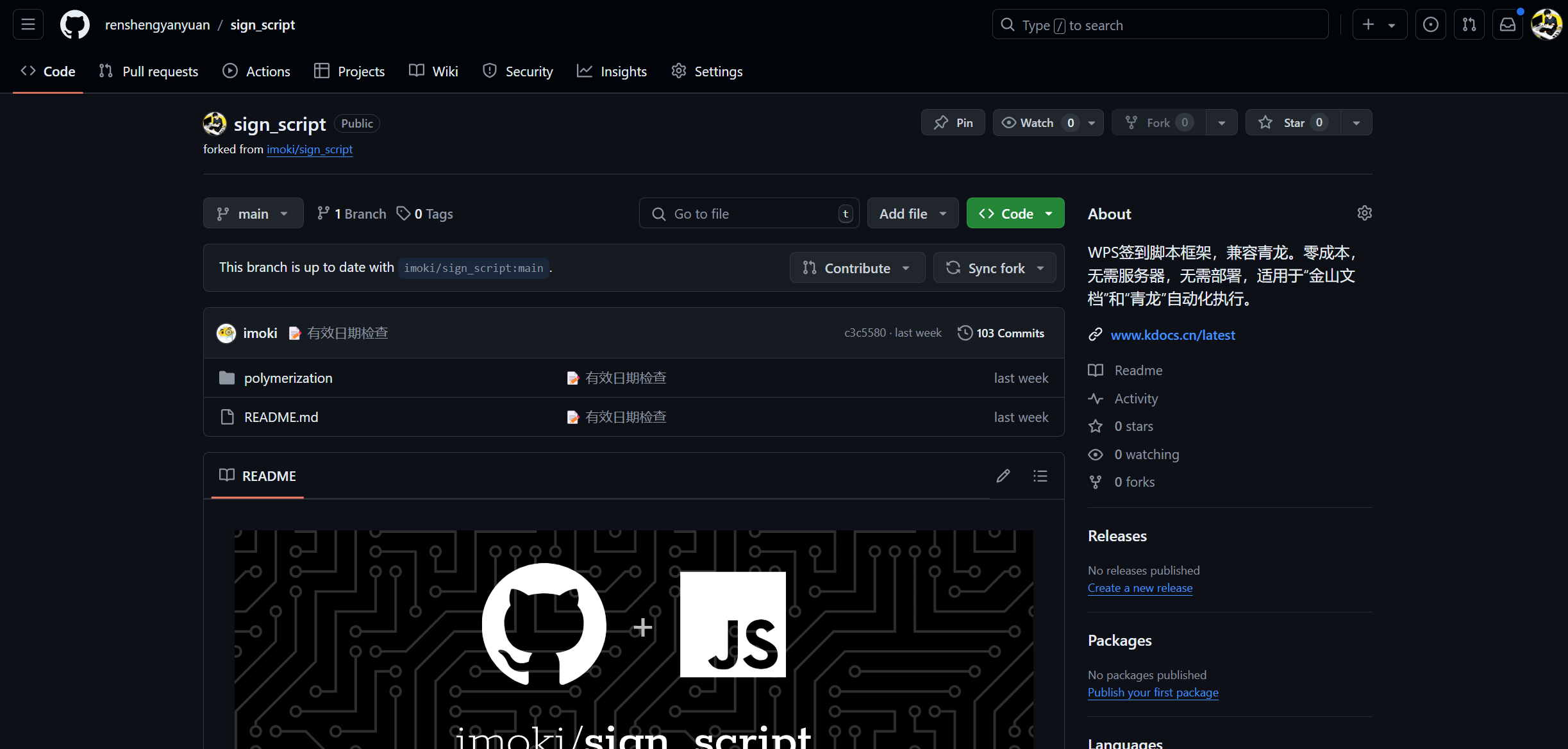renshengyanyuan/sign_script: WPS签到脚本框架,兼容青龙。零成本,无需服务器,无需部署,适用于“金山文档”和“青龙”自动化执行。 (github.com)