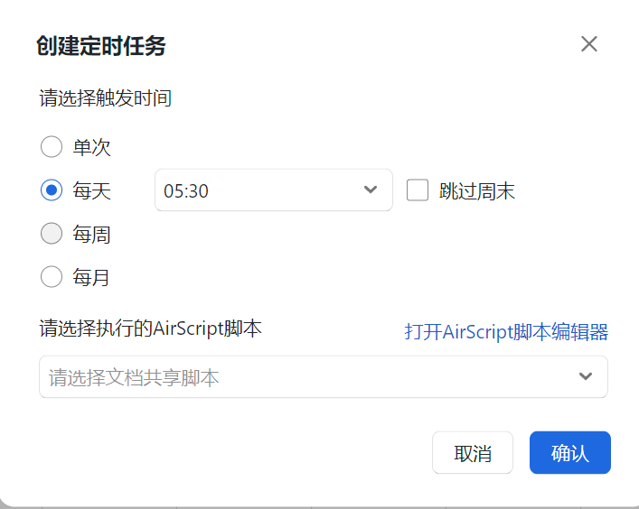 描述:编写金山文档AirScript脚本,设置定时任务运行