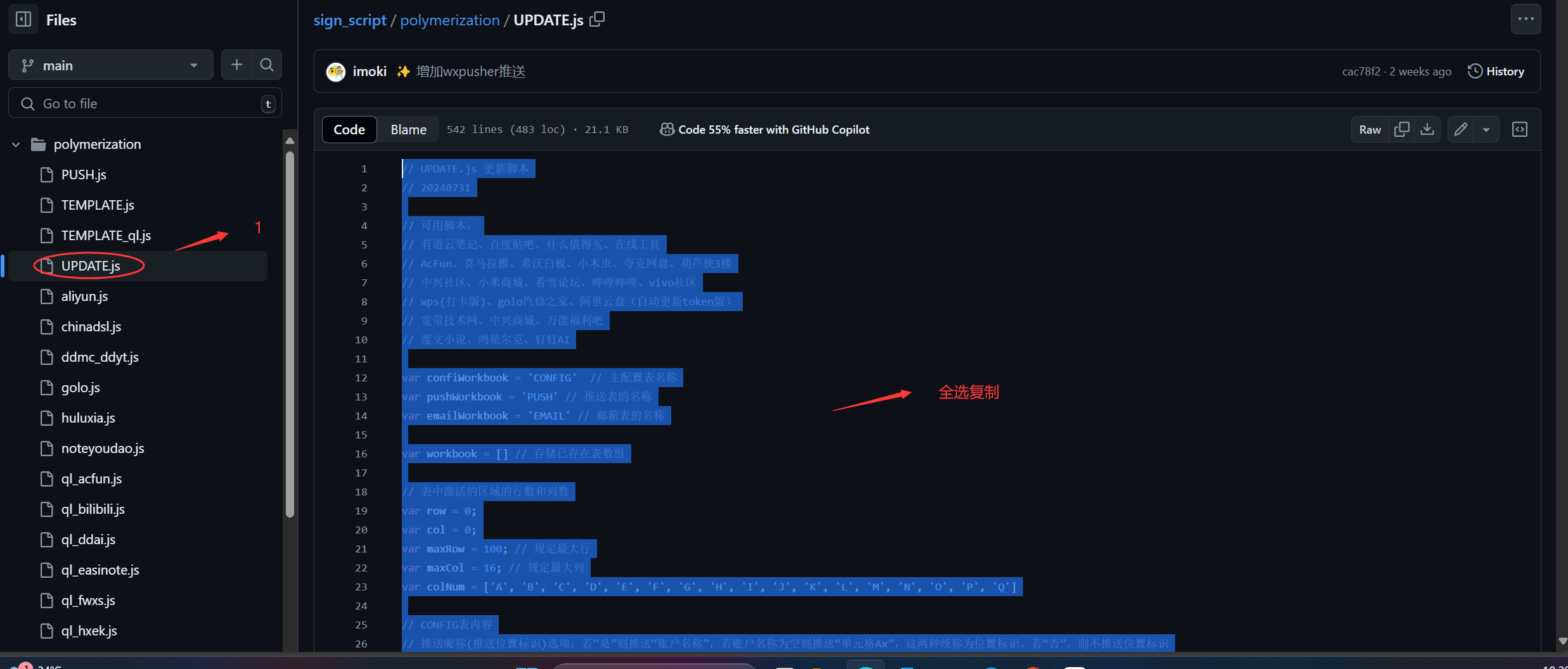 5.点击polymerization文件夹—— 打开UPDATE.JS——复制全部内容