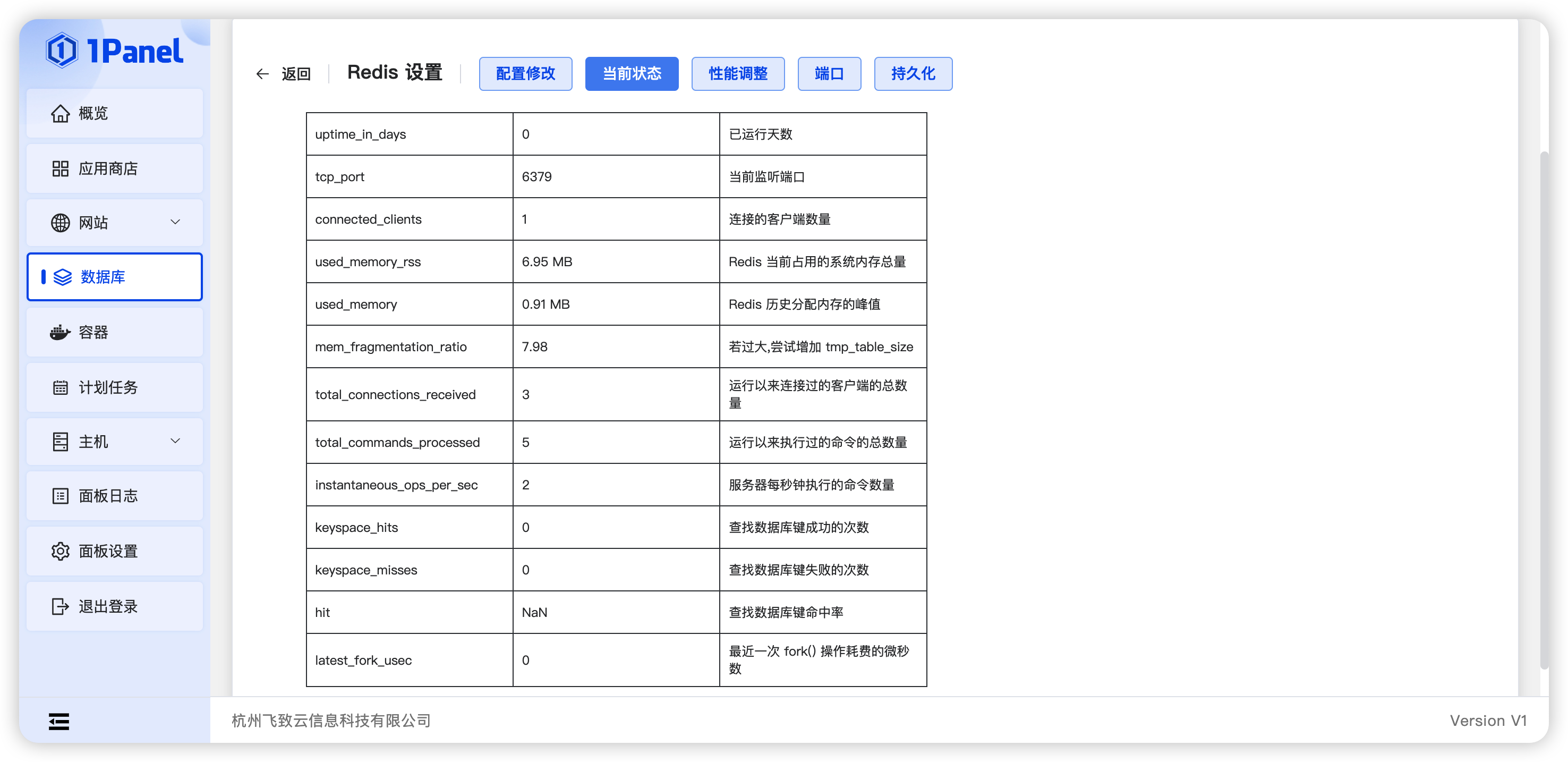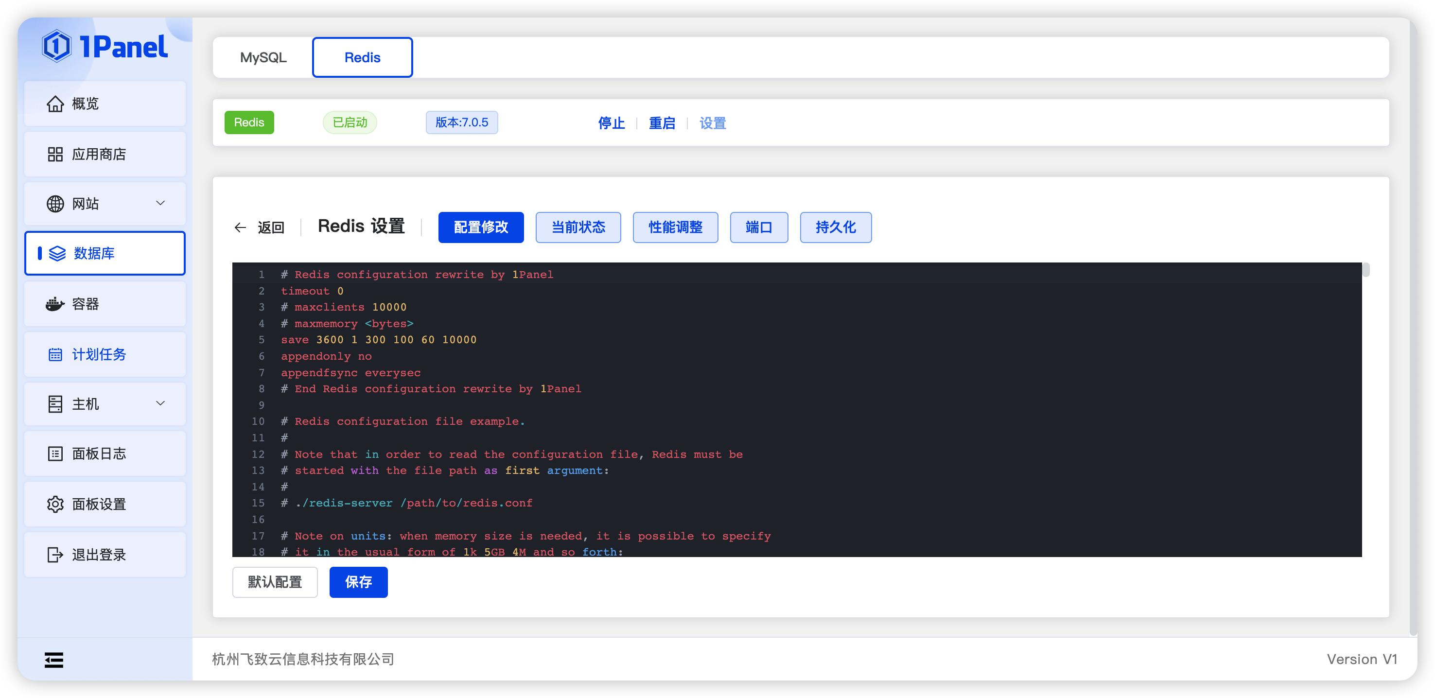 注意事项: 错误的数据库配置将导致 Redis 服务不可用,请谨慎修改。