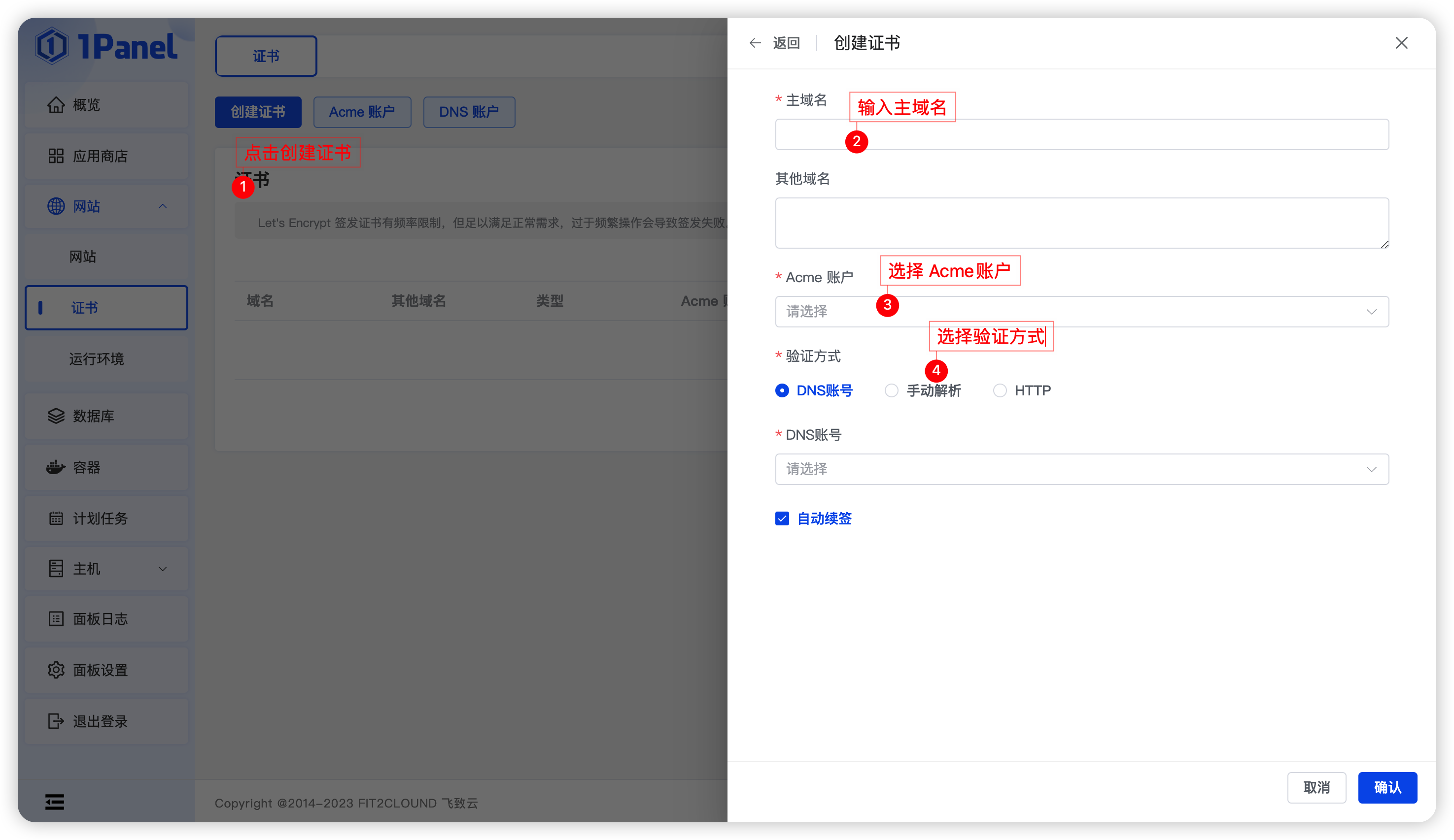 如果是 DNS 验证模式,需要提前准备DNS账号