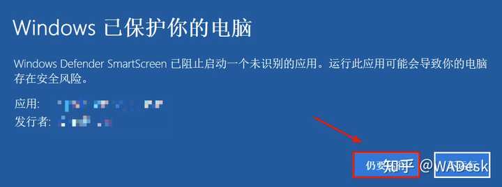 出现弹窗的时候,点击【更多信息】后选择【仍要运行】