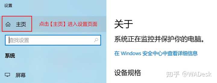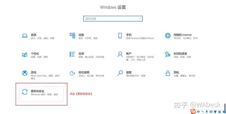 点击【主页】进入【Windows设置】,然后点击【更新和安全】