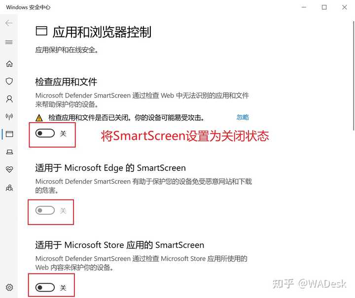 安全中心,应用和浏览器控制,这里的选项关掉才对。